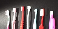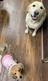 大型犬:ロダン、小型犬:きなこ それぞれ口の大きさも異なりますし、磨き方などもそれぞれです。