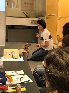 午前の部は、初級編。これから歯みがきを始める方が半数以上だったので、座学後、まず愛犬たちに歯ブラシに慣れてもらうためにはどのようにしたらよいか、デモを交えながらお話を進めていきました。