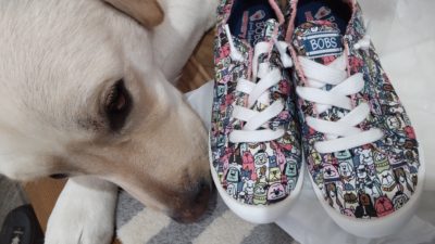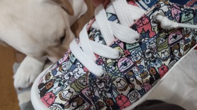 スケッチャーズがあり、ちらっと目に入ったスニーカーがなんと犬柄U^エ^U