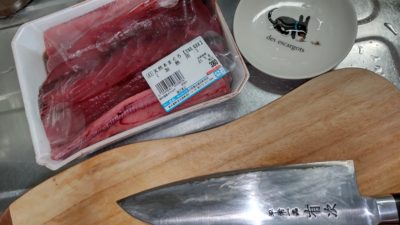 ロダンとルパンは本鮪の赤身の部分、飼い主はキハダマグロ(トホホ…)の夕食おかずとなりました。