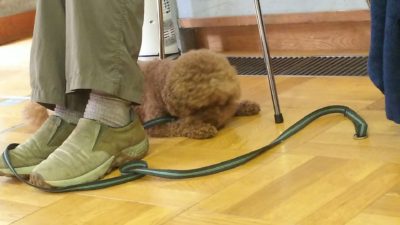 動物病院の待合室、犬も一緒に居られるお店での食事など。