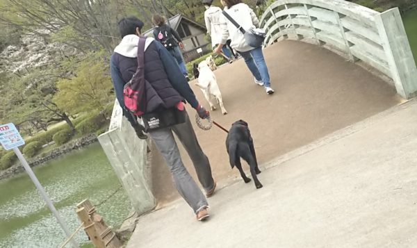 今回のメンバーは橋を怖がる犬はいませんでしたが、橋を怖がる犬もいますので、ここは、社会化(環境慣れ)できているな、と実感できたと思います。