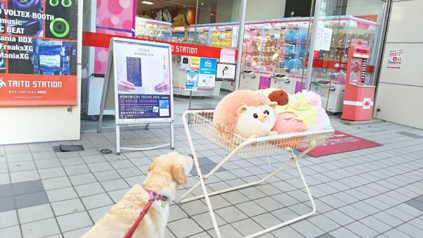 ゲームセンターの前で、ぬいぐるみをガン見!