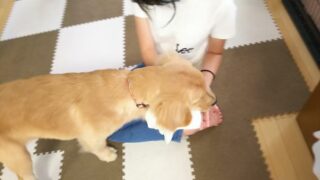 以前もゴールデンの女の子と暮らしていたご家族ですがお別れがあり、でもすぐに、新しいご縁があってルルちゃんを迎えて、すぐにパピーレッスンの御依頼をいただきました。おうちには、モモちゃんという猫もいるのですが、とっても仲良しです。ルルちゃんは猫...
